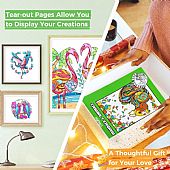 Η απαλή υφή του υπόλευκου χαρτιού εξασφαλίζει άριστη απόδοση χρωμάτων και διευκολύνει τη ροή της δημιουργικότητάς σας. Οι διαστάσεις του βιβλίου είναι ιδανικές για εύκολη αποθήκευση και μεταφορά, ώστε να μπορείτε να χαλαρώνετε όπου κι αν βρίσκεστε.