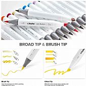 Το σετ περιλαμβάνει 25 μαρκαδόρους (24 χρώματα και 1 άχρωμο Blender) με διπλή μύτη Brush & Chisel που έχουν ως βάση την αλκοόλη. Είναι κατάλληλοι για εικονογράφηση και σχέδιο. Ιδανικό για παιδιά και ενήλικες.