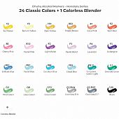 24 βασικά ζωντανά χρώματα και 1 άχρωμος μαρκαδόρος Blender για να διευρύνετε τους καλλιτεχνικούς σας ορίζοντες με τη σειρά μαρκαδόρων Honolulu Alcohol Art Markers με διπλή μύτη!