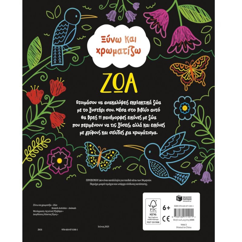 Ετοιμάσου να ανακαλύψειs εκπληκτικά ζώα με το ξυστήρι σου. Μέσα στο βιβλίο αυτό θα βρειs 11 πανέμορφεs εικόνεs με ζώα που περιμένουν να τις ξύσειs, αλλά και εικόνεs με γρίφουs και σελίδεs για χρωμάτισμα.