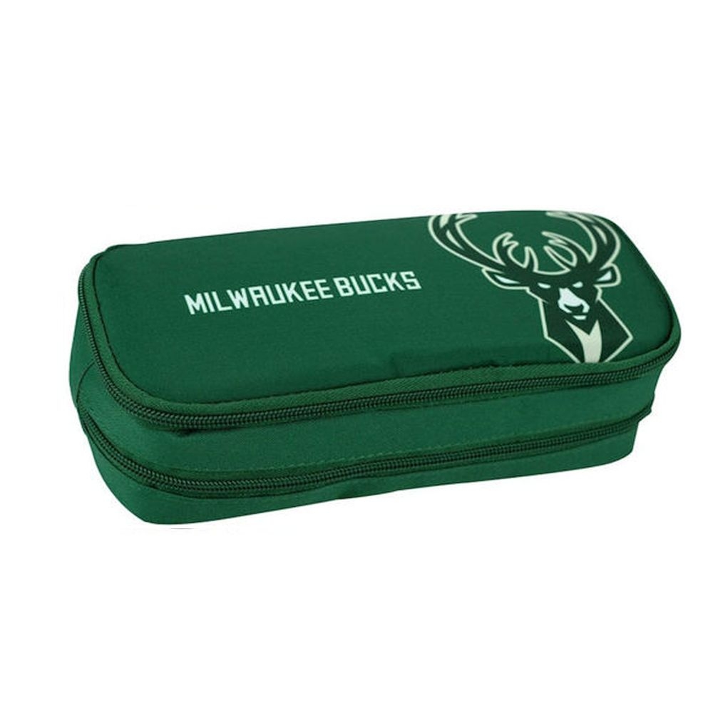 Κασετίνα βαρελάκι της Back Me Up δύο θέσεων, με φερμουάρ σε σχέδιο Milwaukee Bucks.