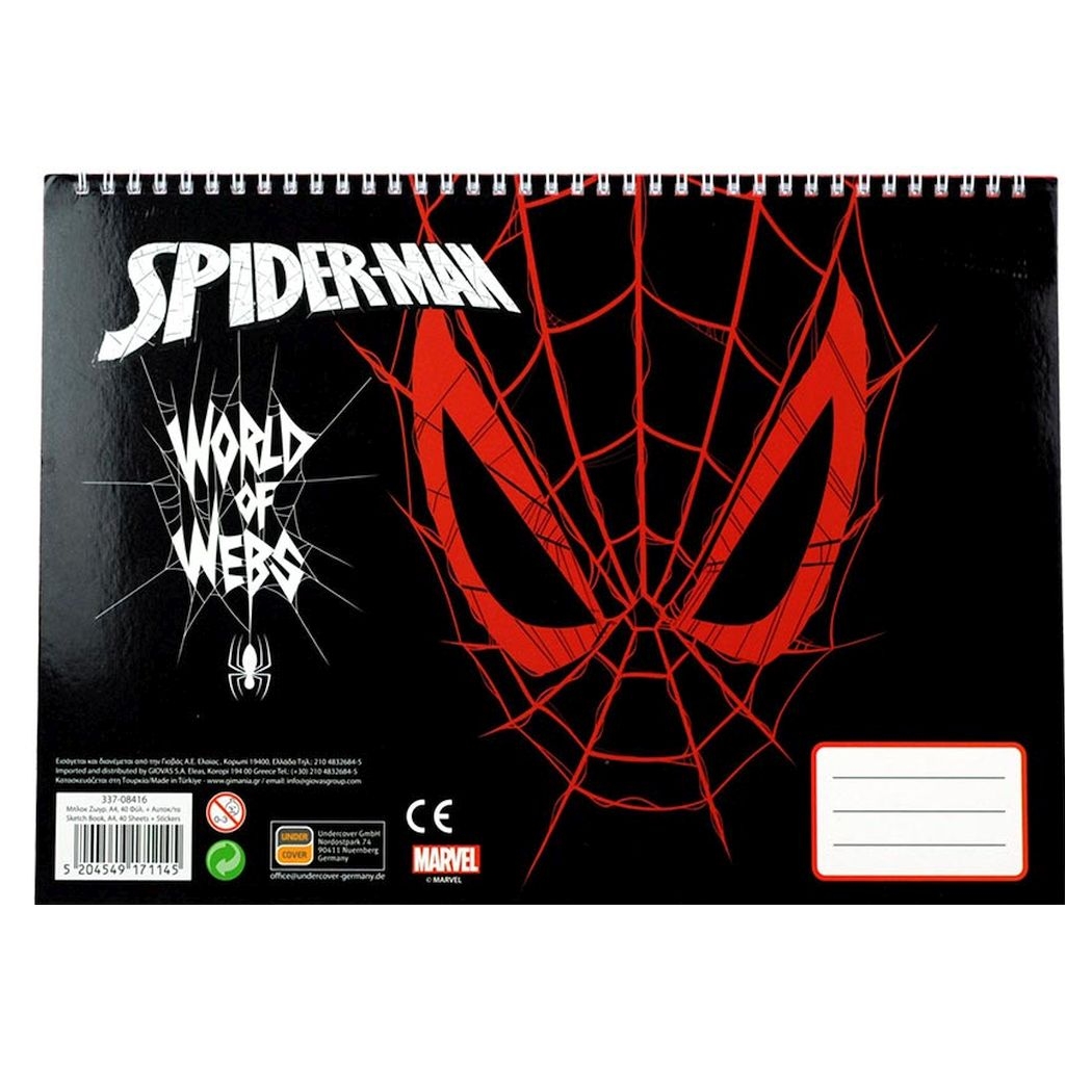 Μπλοκ ζωγραφικής σπιράλ με Αυτοκόλλητα A4 - Spiderman World Of Webs (40Φ.) - Marvel