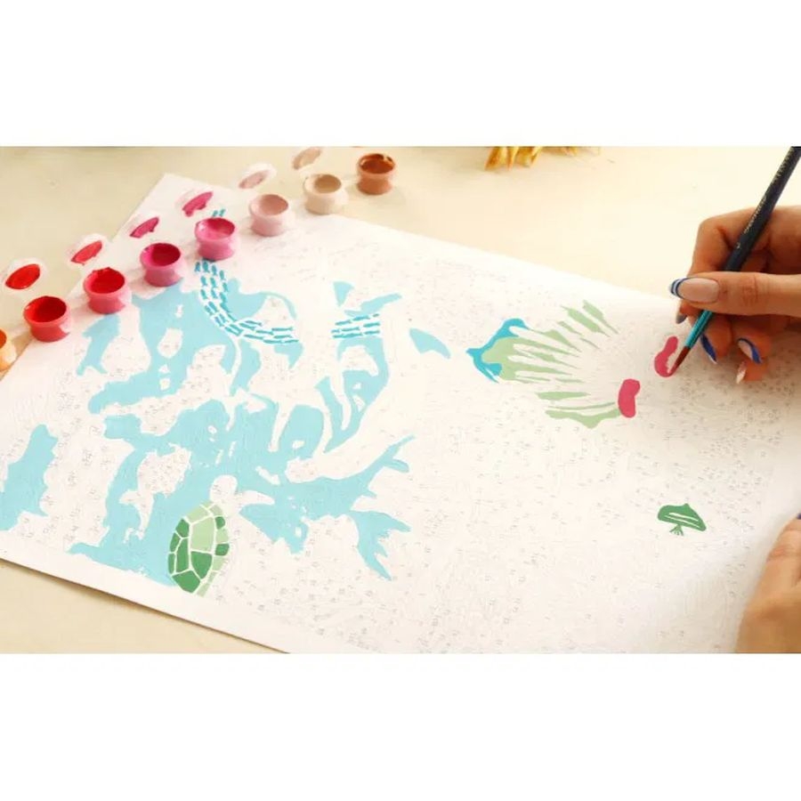 Βυθιστείτε σε έναν κόσμο χρωμάτων και ονείρων με το σετ ζωγραφικής «Coral Reef»! Αυτό το πλήρες κιτ σας δίνει όλα όσα χρειάζεστε για να δημιουργήσετε τη δική σας μοναδική εικόνα σε μια όμορφη διαστάσεων 24,5 x 32,5 εκ. Ανακαλύψτε τη χαρά της δημιουργίας και απολαύστε την ικανοποίηση που προέρχεται από την εξέλιξη της τέχνης σας, καθώς η εικόνα σας αποκαλύπτεται σταδιακά μπροστά στα μάτια σας. Ένα υπέροχο δώρο για μικρούς και μεγάλους που αγαπούν την τέχνη και τη δημιουργικότητα!