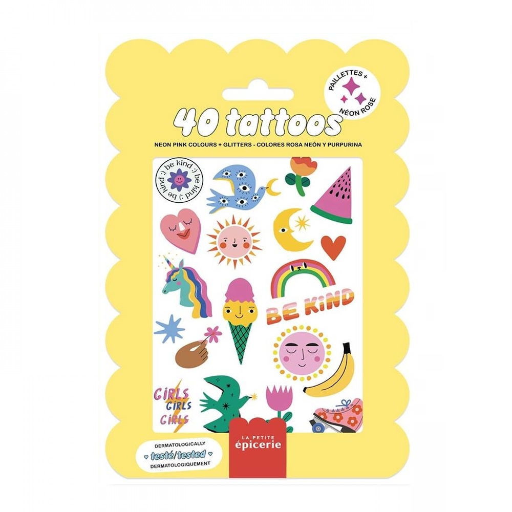 Ανακαλύψτε το σετ τατουάζ California Dream από την La Petite Épicerie και ξεκινήστε ένα ηλιόλουστο και εορταστικό ταξίδι! Με 40 προσωρινά τατουάζ με γκλίτερ σε νέον ροζ, αυτό το σετ μεταφέρει τα παιδιά σε πολύχρωμα τοπία με φοίνικες, ουράνια τόξα, παγωτά και καρύδες. Ένας ποπ και χαρούμενος κόσμος για αξέχαστα πάρτι. Ένας ποπ και χαρούμενος κόσμος για αξέχαστα πάρτι. Εύκολα στην εφαρμογή και δερματολογικά ελεγμένα, αυτά τα τατουάζ θα φωτίσουν το δέρμα με λαμπερά χρώματα και γκλίτερ για να κάνουν το χαμόγελο όλων να λάμψει.