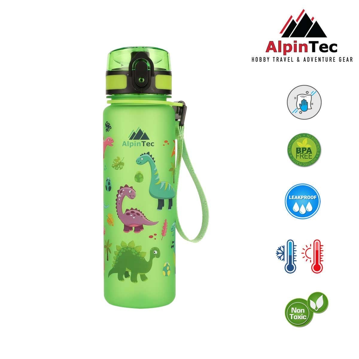 -Κατασκευασμένα με νέας γενιάς συμπολυεστέρα Tritan, τα παγούρια της AlpinTec είναι ασφαλή στη χρήση. Σε αντίθεση με τα πλαστικά υλικά που χρησιμοποιούνται στα συνηθισμένα παγούρια, το υλικό Τritan είναι απαλλαγμένο από δισφαινόλη Α (BPA), δισφαινόλη S (BPS), οιστρογονική δραστηριότητα (ΕΑ) και ανδρογονική δραστηριότητα (ΑΑ).