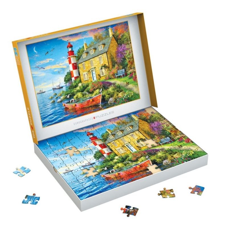 Αποδράστε σε ένα γαλήνιο παραθαλάσσιο σκηνικό με το παζλ The Cottage Lighthouse 104 κομματιών από τη συλλογή Eurographics Connecting Pieces. Με την εικονογράφηση του Dominic Davison, αποτυπώνει ένα όμορφο πέτρινο εξοχικό δίπλα σε φάρο, πλαισιωμένο από κήπους και θάλασσα. Τα παχιά κομμάτια εξασφαλίζουν εύκολο χειρισμό, ενώ η εικόνα στο καπάκι του κουτιού λειτουργεί ως πρακτικός οδηγός. Ένα χαλαρωτικό παζλ που προσφέρει διασκέδαση, συγκέντρωση και στιγμές απόλαυσης για όλες τις ηλικίες.
