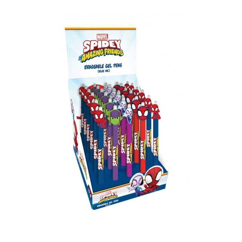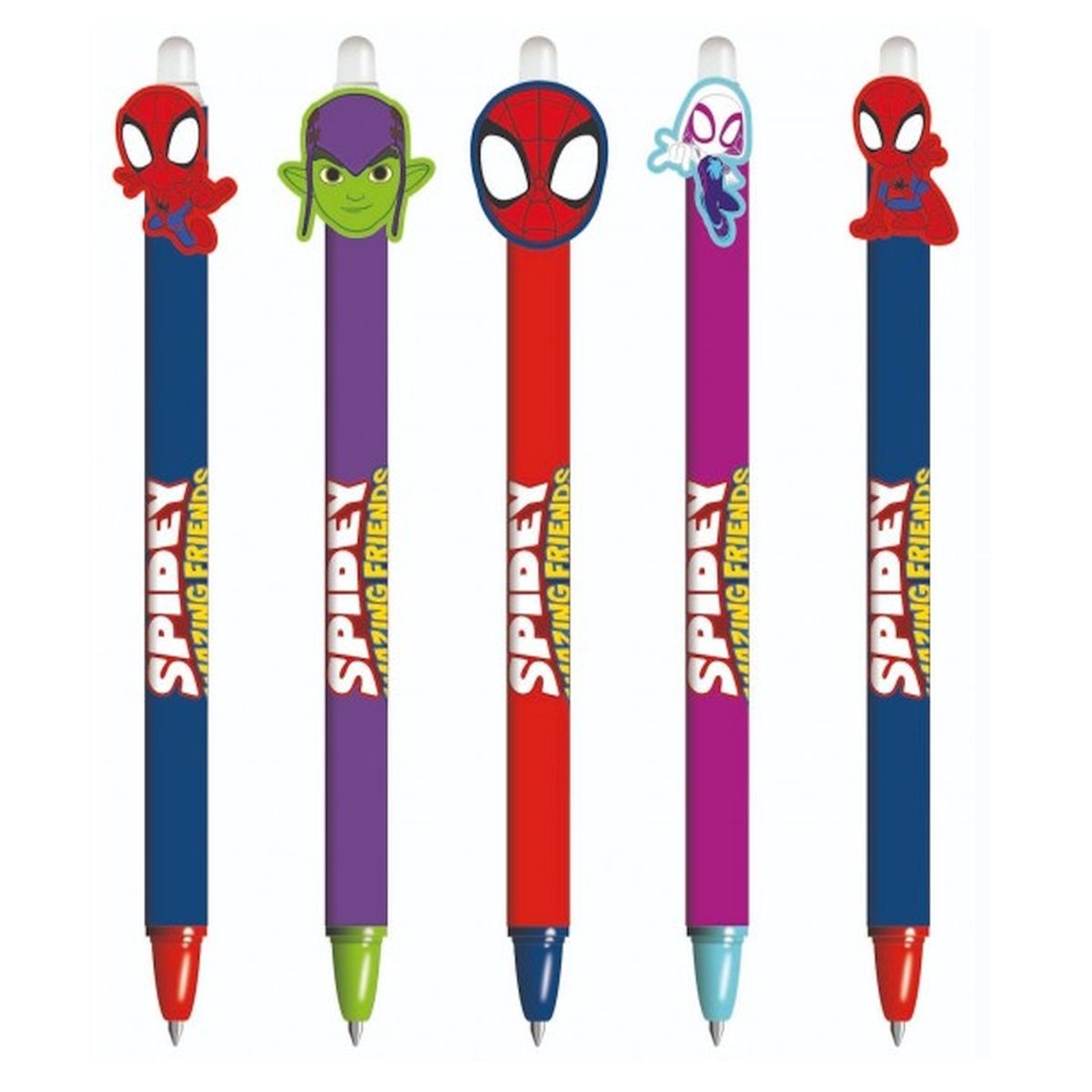 Ζήσε τη μαγεία της γραφής με το επίσημο Spidey erasable gel pen από την Pyramid International! Το αγαπημένο σχέδιο του Spidey δίνει στυλ στις σημειώσεις σου, ενώ η πρακτική τεχνολογία μελανιού που σβήνει σου επιτρέπει να γράφεις ξανά και ξανά χωρίς περιορισμούς. Χάρη στο κουμπί μηχανισμού (click button), το στυλό ανοίγει και κλείνει εύκολα, χωρίς καπάκι που μπορεί να χαθεί. Το μελάνι gel προσφέρει ομαλή, καθαρή ροή γραφής, ιδανική για το σχολείο, τη μελέτη, τη δουλειά ή ακόμη και το προσωπικό σου ημερολόγιο.