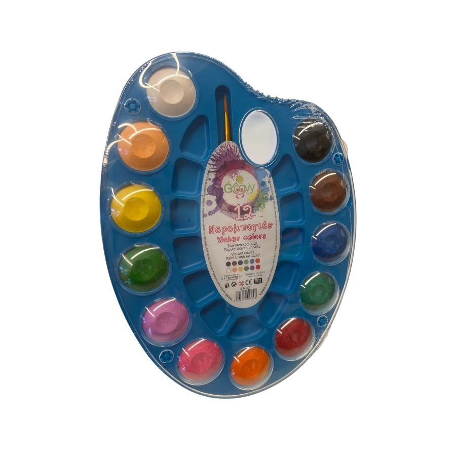 Παλέτα με Νερομπογιές 12 χρωμάτων (Περιλαμβάνεται πινέλο) - Groovy