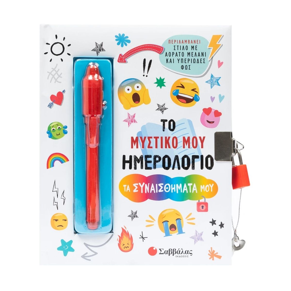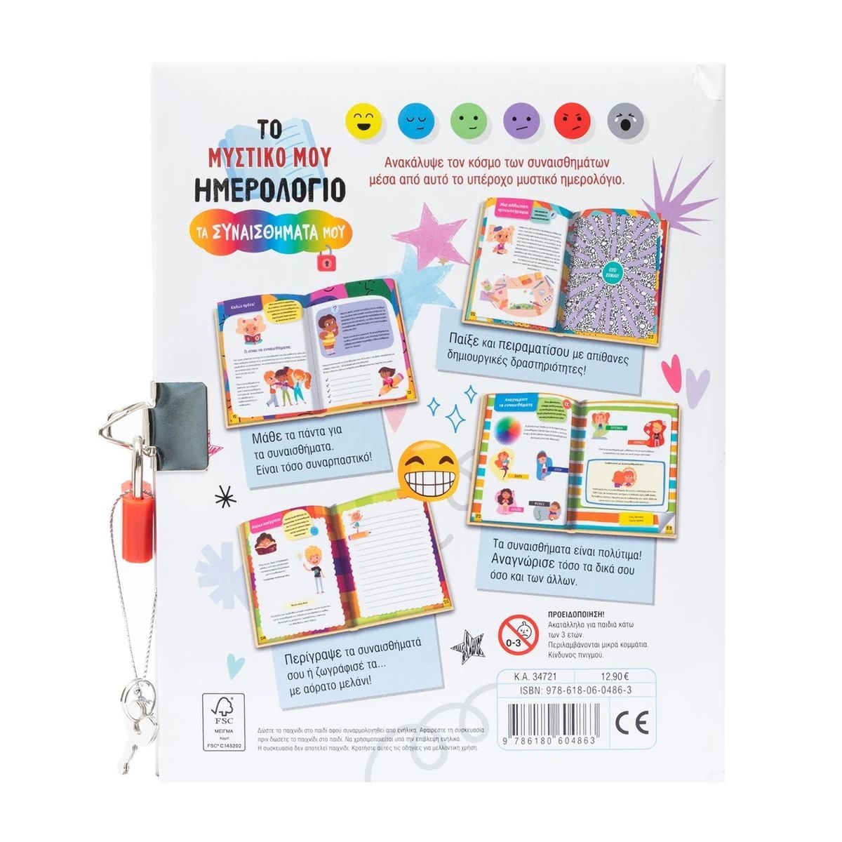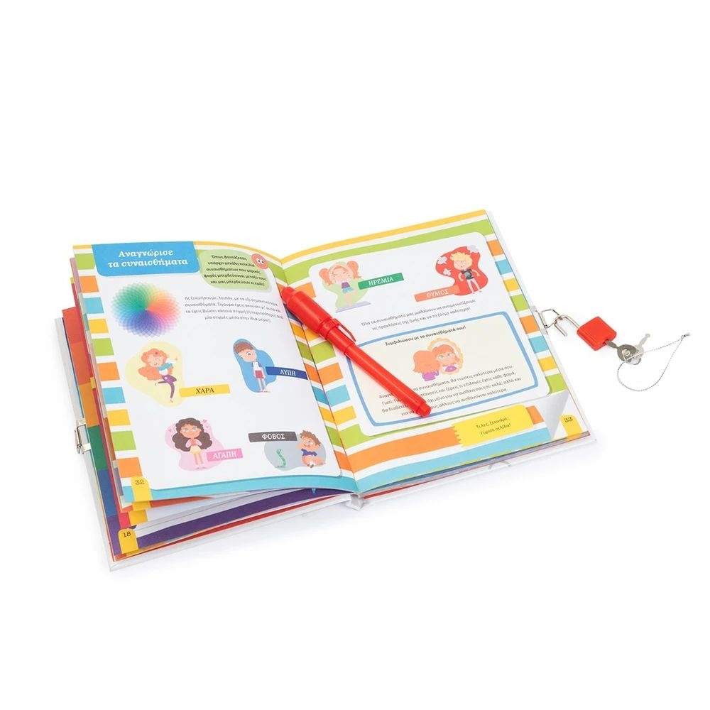 Ανακάλυψε τον κόσμο των συναισθημάτων μέσα από αυτό το υπέροχο μυστικό ημερολόγιο. Παίξε και πειραματίσου με απίθανες δημιουργικές δραστηριότητες! Μάθε τα πάντα για τα συναισθήματα. Είναι τόσο συναρπαστικό! Τα συναισθήματα είναι πολύτιμα! Αναγνώρισε τόσο τα δικά σου όσο και των άλλων. Περίγραψε τα συναισθήματά σου ή ζωγράφισέ τα… με αόρατο μελάνι!