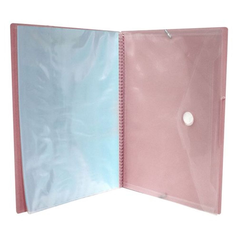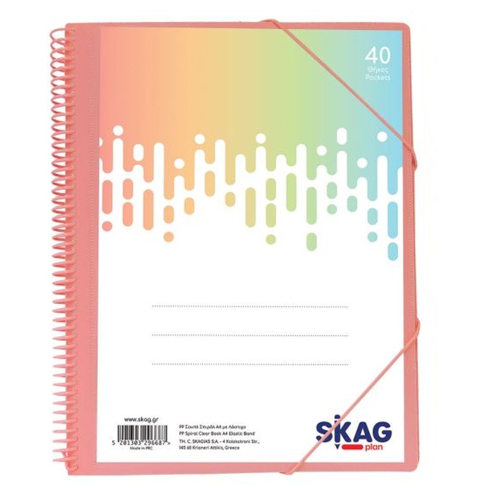 Premium ντοσιέ σουπλ σπιράλ pastel ροζ με 40 ενσωματωμένες διαφάνειες και λάστιχο για να κλείνει, της skag.