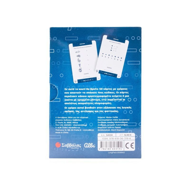 Σε αυτό το κουτί θα βρείτε 50 κάρτες με γρίφους που απαιτούν να σπάσετε τους κώδικες. Οι κάρτες περιέχουν κάποιο κρυπτογραφημένο κείμενο ή μια εικόνα με κρυμμένο μήνυμα, ενώ παρέχονται οι απολύτως απαραίτητες πληροφορίες. Οι γρίφοι αυτοί βοηθούν στην εξάσκηση της λογικής σκέψης, της αντίληψης και της φαντασίας.