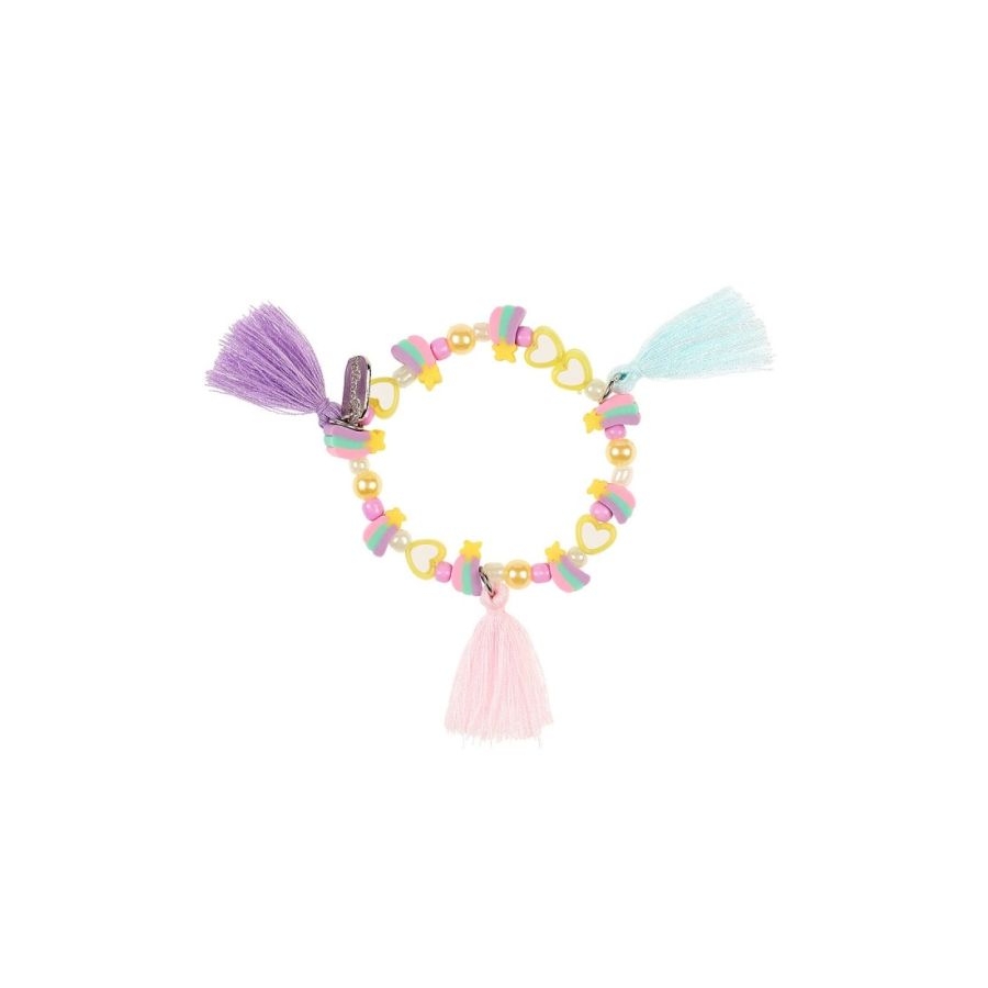 Ανακάλυψε το μαγευτικό βραχιολάκι Leira, ένα κομψό αξεσουάρ που προσθέτει μια νότα μαγείας σε κάθε σου εμφάνιση. Με λαμπερές χάντρες, παστέλ καρδούλες και φωτεινά αστέρια, αυτό το πολύχρωμο βραχιολάκι στολίζει όμορφα κάθε ντύσιμο. Τα υφασμάτινα φουντάκια σε μωβ και ροζ αποχρώσεις προσθέτουν μια γιορτινή πινελιά, ιδανική για ειδικές περιστάσεις ή για να φέρεις χαρά στην καθημερινότητά σου. Είναι ελαστικό και άνετο, προσαρμόζεται εύκολα σε κάθε καρπό. Ιδανικό για δώρο στον εαυτό σου ή σε αγαπημένα σου πρόσωπα, για να λάμπεις με στυλ κάθε στιγμή.