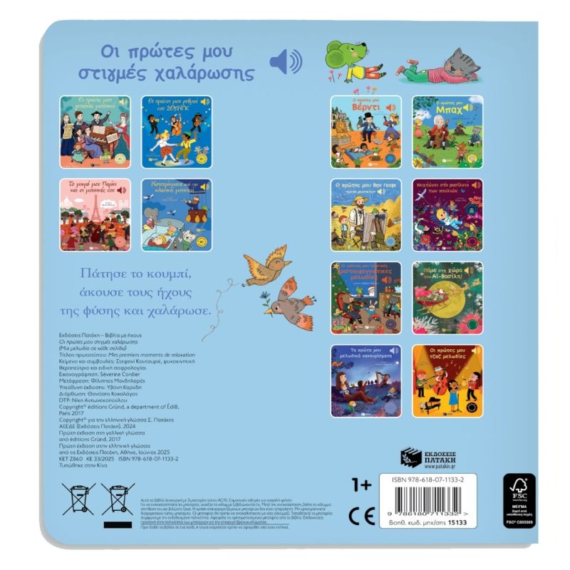 Πάτησε το κουμπί, άκουσε τους ήχους της φύσης και χαλάρωσε. Εδώ και χρόνια οι Εκδόσεις Πατάκη πρωτοπορούν στην κατηγορία των ηχητικών βιβλίων με μια μεγάλη συλλογή διαλεγμένη με φροντίδα για τα πρώτα βήματα των παιδιών σας στο διάβασμα και στη μουσική. Βιβλία που βοηθούν τα παιδιά να ξεδιπλώσουν τα συναισθήματα αλλά και τα ταλέντα τους.