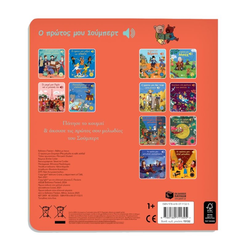 Πάτησε το κουμπί & άκουσε τις πρώτες σου μελωδίες του Σούμπερτ! Εδώ και χρόνια οι Εκδόσεις Πατάκη πρωτοπορούν στην κατηγορία των ηχητικών βιβλίων με μια μεγάλη συλλογή διαλεγμένη με φροντίδα για τα πρώτα βήματα των παιδιών σας στο διάβασμα και στη μουσική. Βιβλία που βοηθούν τα παιδιά να ξεδιπλώσουν τα συναισθήματα αλλά και τα ταλέντα τους.