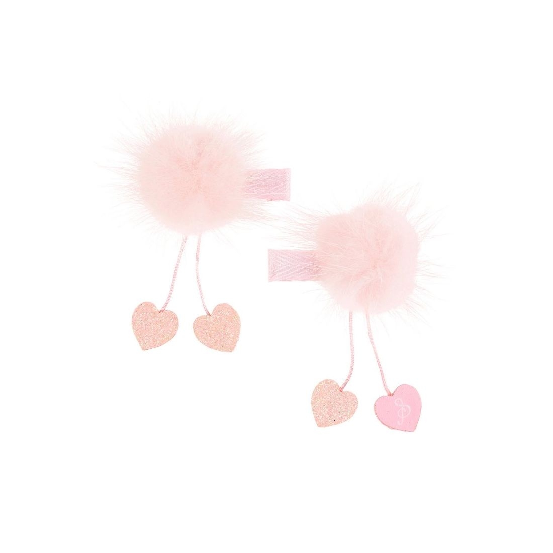 Χρώμα, υφή και πολλή γλύκα! Τα τσιμπιδάκια μαλλιών Amandine είναι διακοσμημένα με χαριτωμένα πομ-πομ και καρδούλες, προσθέτοντας μια παιχνιδιάρικη και ρομαντική πινελιά σε κάθε παιδικό χτένισμα.