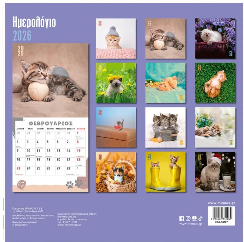 Μηνιαίο Ημερολόγιο Τοίχου 2026: Γατάκια (30x30) - Εκδόσεις Μίνωας