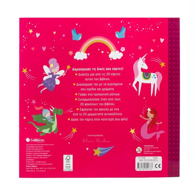 Δημιούργησε τις δικές σου κάρτες! Διάλεξε μία από τις 20 κάρτες αυτού του βιβλίου. Διακόσμησέ την με τα αγαπημένα σου σχέδια και χρώματα. Γράψε ένα προσωπικό μήνυμα. Συναρμολόγησε έναν από τους 20 φακέλους του βιβλίου. Σφράγισε τον φάκελο με ένα από τα 20 χρωματιστά αυτοκόλλητα και δώσε την κάρτα στην καλύτερή σου φίλη!