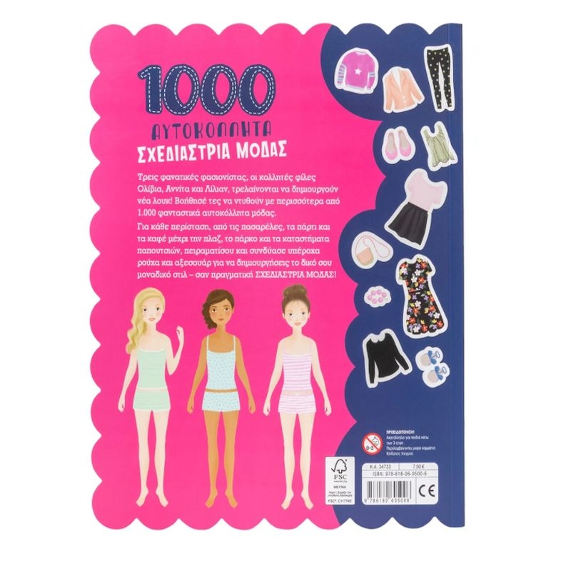 Τρεις φανατικές φασιονίστας, οι κολλητές φίλες Ολίβια, Αννίτα και Λίλιαν, τρελαίνονται να δημιουργούν νέα λουκ! Βοήθησέ τες να ντυθούν με περισσότερα από 1000 φανταστικά αυτοκόλλητα μόδας. Για κάθε περίσταση, από τις πασαρέλες, τα πάρτι και τα καφέ μέχρι την πλαζ, το πάρκο και τα καταστήματα παπουτσιών, πειραματίσου και συνδύασε υπέροχα ρούχα και αξεσουάρ για να δημιουργήσεις το δικό σου μοναδικό στιλ σαν πραγματική ΣΧΕΔΙΑΣΤΡΙΑ ΜΟΔΑΣ!