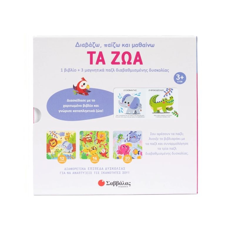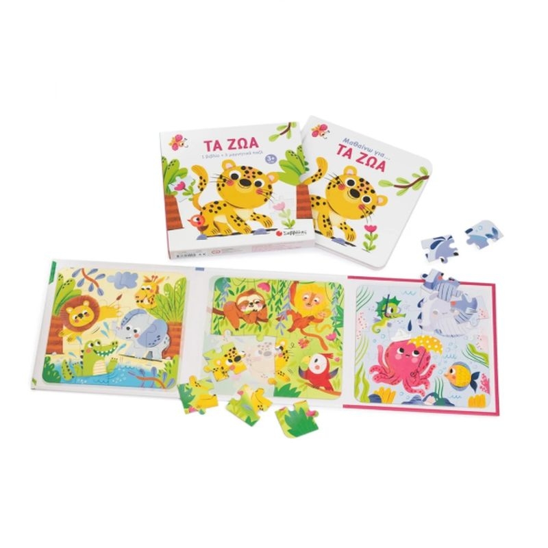 Βιβλίο & 3 Μαγνητικά Πάζλ: Τα ζώα (12κ/16κ/20κ.) - Εκδόσεις Σαββάλας