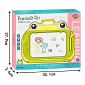 Ο πίνακας αυτός είναι ένα παιδικό εκπαιδευτικό‑δημιουργικό παιχνίδι τύπου “γράψε‑σβήσε” ή “μαγικός” πίνακας, σχεδιασμένος για να επιτρέπει στο παιδί να σχεδιάζει, γράφει και να σβήνει εύκολα, πολλές φορές. Είναι ιδανικός για ζωγραφική, σχέδια, γράμματα, αριθμούς κ.ά.
