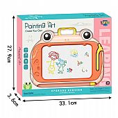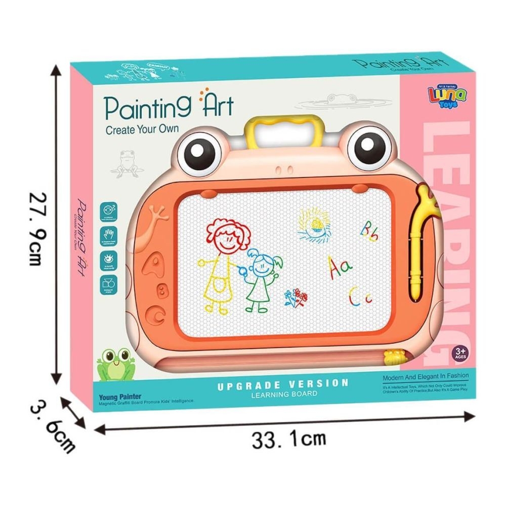Ο πίνακας αυτός είναι ένα παιδικό εκπαιδευτικό‑δημιουργικό παιχνίδι τύπου “γράψε‑σβήσε” ή “μαγικός” πίνακας, σχεδιασμένος για να επιτρέπει στο παιδί να σχεδιάζει, γράφει και να σβήνει εύκολα, πολλές φορές. Είναι ιδανικός για ζωγραφική, σχέδια, γράμματα, αριθμούς κ.ά.
