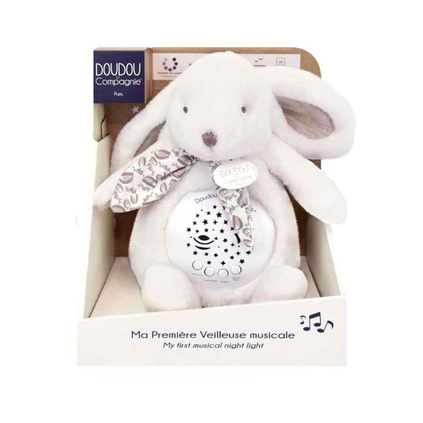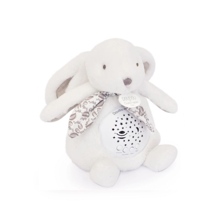 Το Πρώτο μου Μουσικό Φωτάκι Νυκτός - Λούτρινος Προτζέκτορας Λευκό Κουνελάκι - Doudou & Compagnie