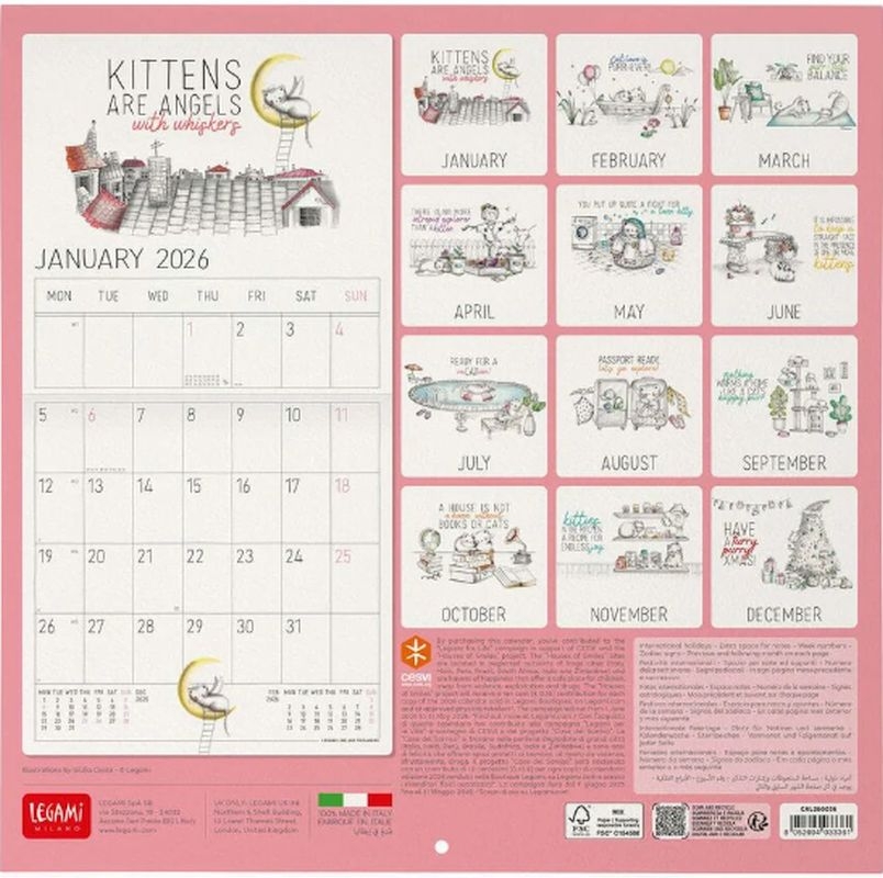 Μηνιαίο Ημερολόγιο Τοίχου 2026 - Sketchy Cats (30x29) - Legami