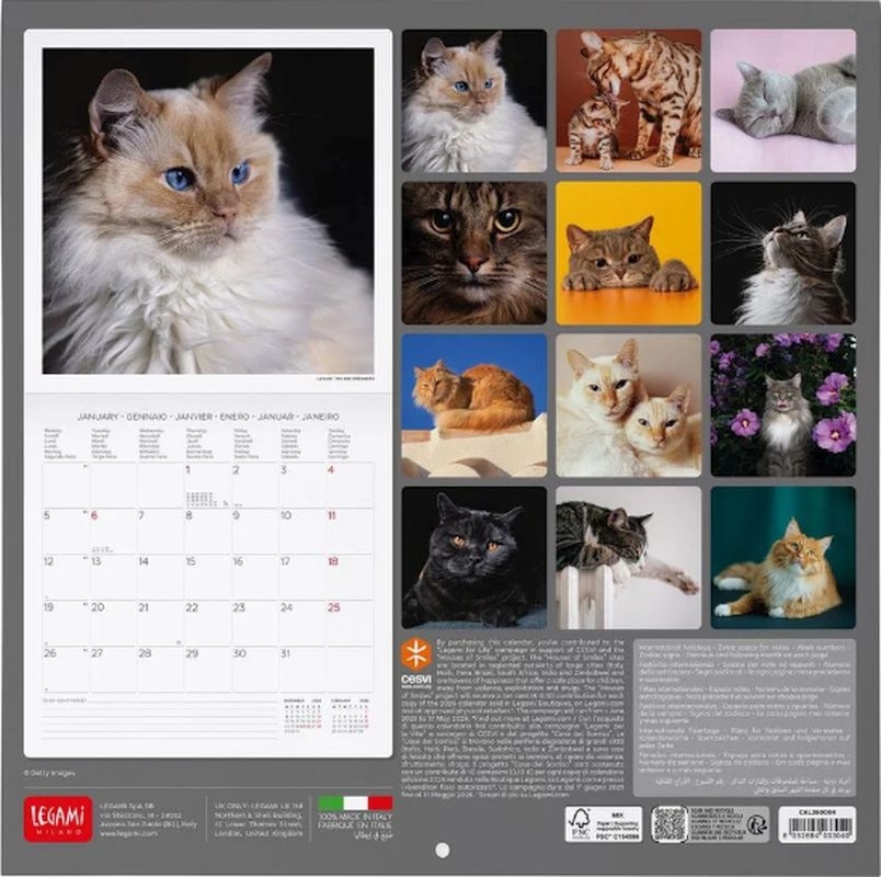«Αν είσαι τρελός για τις γάτες, ξέρουμε ακριβώς πώς να… σου ξύσουμε τη φαγούρα το 2026 με το Ημερολόγιο Τοίχου - Cats από τη Legami. Δώδεκα μήνες με ακαταμάχητα βλέμματα, τέλειες πατουσίτσες και γλυκά, αγκαλιάρικα γατάκια.»
