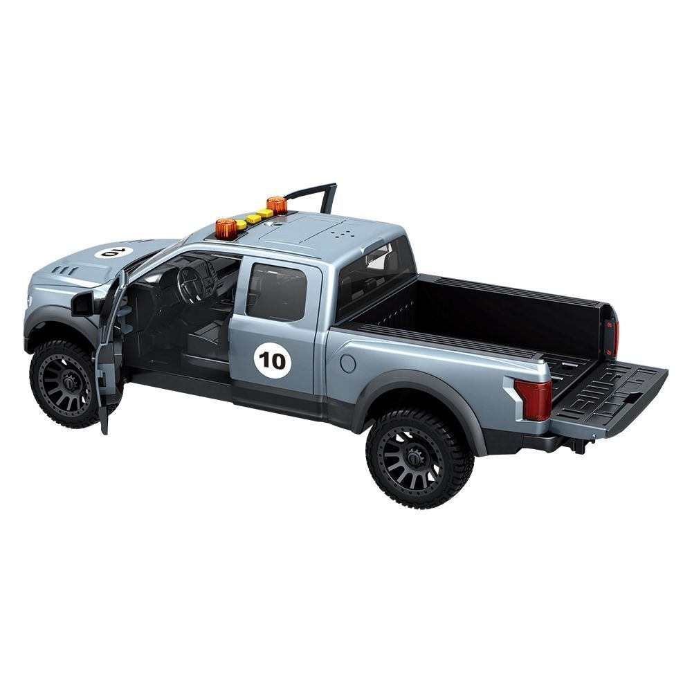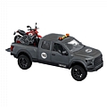 Στην συσκευασία περιλαμβάνεται ένα αυτοκίνητο pick up σε χρώμα μαύρο και μια μηχανή κόκκινη σε κλίμακα 1 προς 16 των πραγματικών.