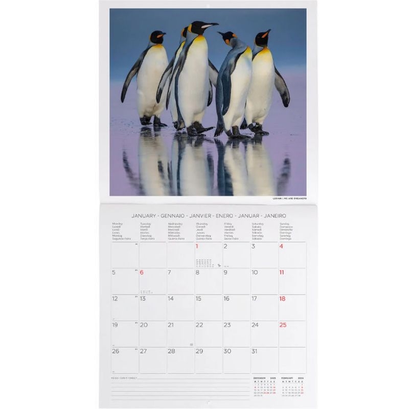Οι πιγκουίνοι είναι τα τέλεια πρότυπα για το 2026: πάντα καλοντυμένοι, απίστευτα αγαπησιάρηδες και καθόλου αγχωμένοι για το αν φαίνονται αστείοι. Το Ημερολόγιο Τοίχου - Penguins από τη Legami θα σου ζεσταίνει την καρδιά, ακόμα και στους πιο κρύους μήνες.