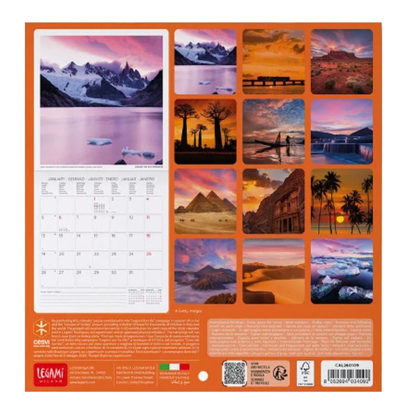 Μηνιαίο Ημερολόγιο Τοίχου 2026 - Sunsets (18x18) - Legami