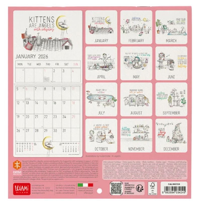 Μηνιαίο Ημερολόγιο Τοίχου 2026 - Sketchy Cats (18x18) - Legami