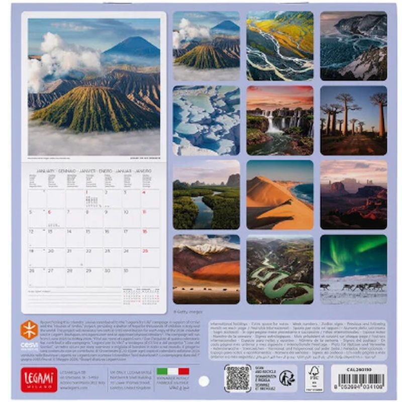 Θα ήθελες να ταξιδέψεις σε όλο τον κόσμο το 2026; Κάνε την αρχή με το Ημερολόγιο Τοίχου – Planet Earth από τη Legami: από τις επιβλητικές κορυφές των βουνών μέχρι τα βάθη των ωκεανών, αυτό το ημερολόγιο θα σε ταξιδέψει σε μια μοναδική περιπέτεια γύρω από τον πανέμορφο πλανήτη μας.
