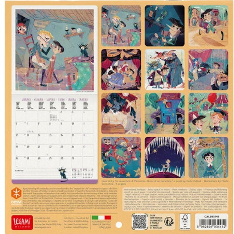 Μηνιαίο Ημερολόγιο Τοίχου 2026 - Pinocchio (18x18) - Legami