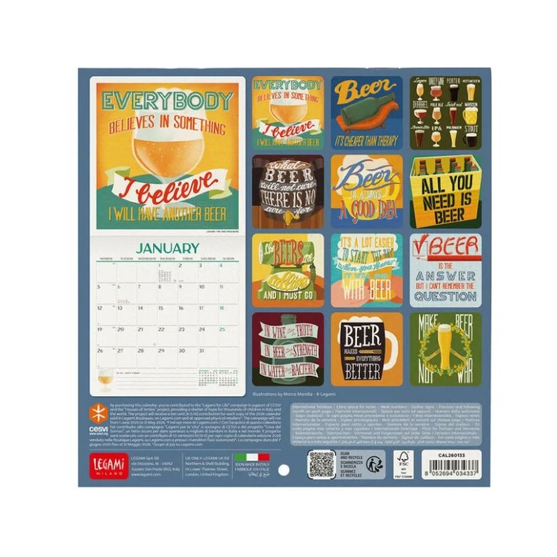Μηνιαίο Ημερολόγιο Τοίχου 2026 - Beer is always a good idea (18x18) - Legami