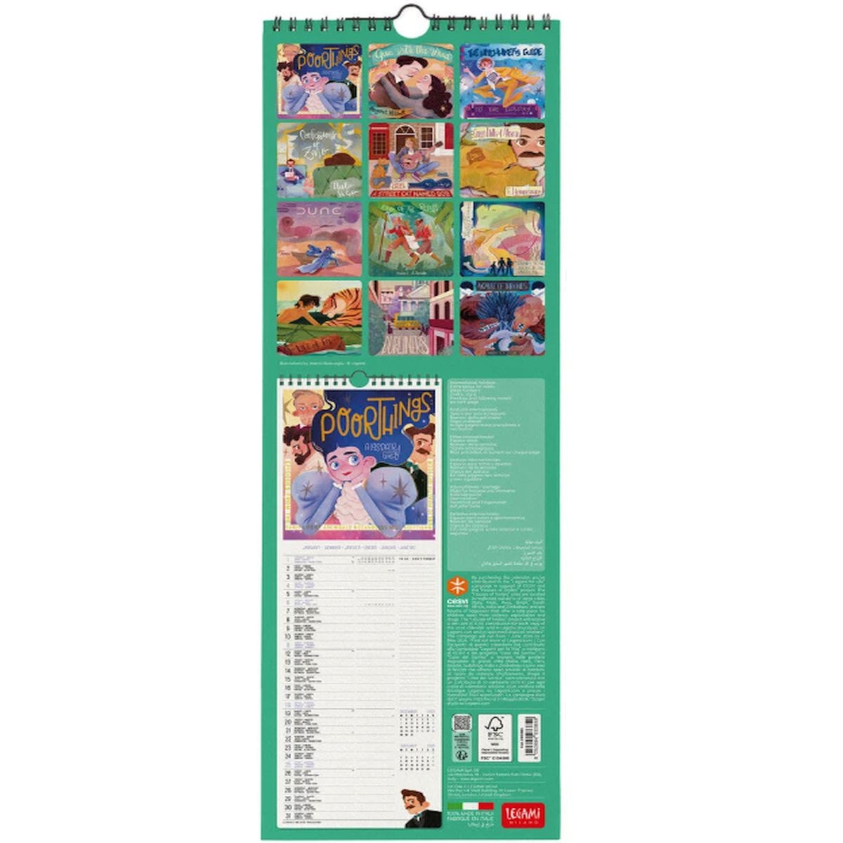 Αν αγαπάς να χάνεσαι μέσα σε μια ιστορία, να ζεις χίλιες ζωές και να απολαμβάνεις το άρωμα του χαρτιού, τότε το μακρύ και στενό Ημερολόγιο Τοίχου – Book Lovers από τη Legami είναι φτιαγμένο για σένα. Κάθε μήνας σου προτείνει ένα ξεχωριστό ανάγνωσμα και σε προσκαλεί να βουτήξεις σε έναν ολοκαίνουργιο κόσμο.