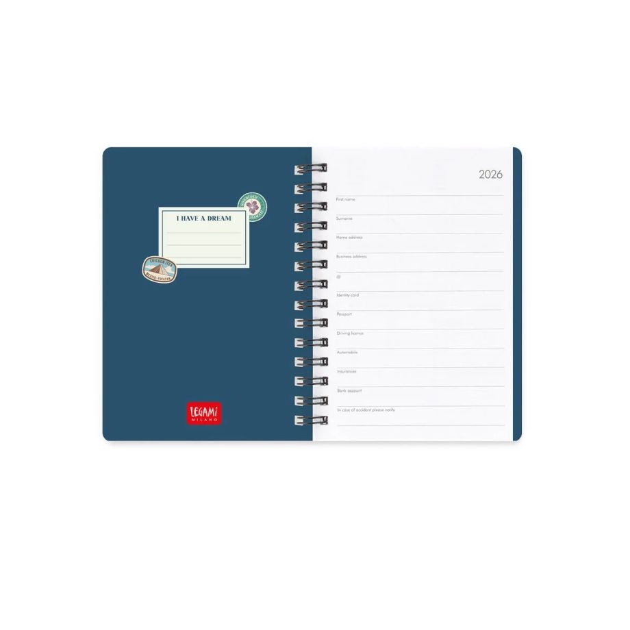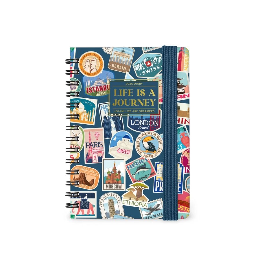 Εβδομαδιαίο Ημερολόγιο Σπιράλ με λάστιχο 2026 - Travel Stickers (8.5x13) - Legami
