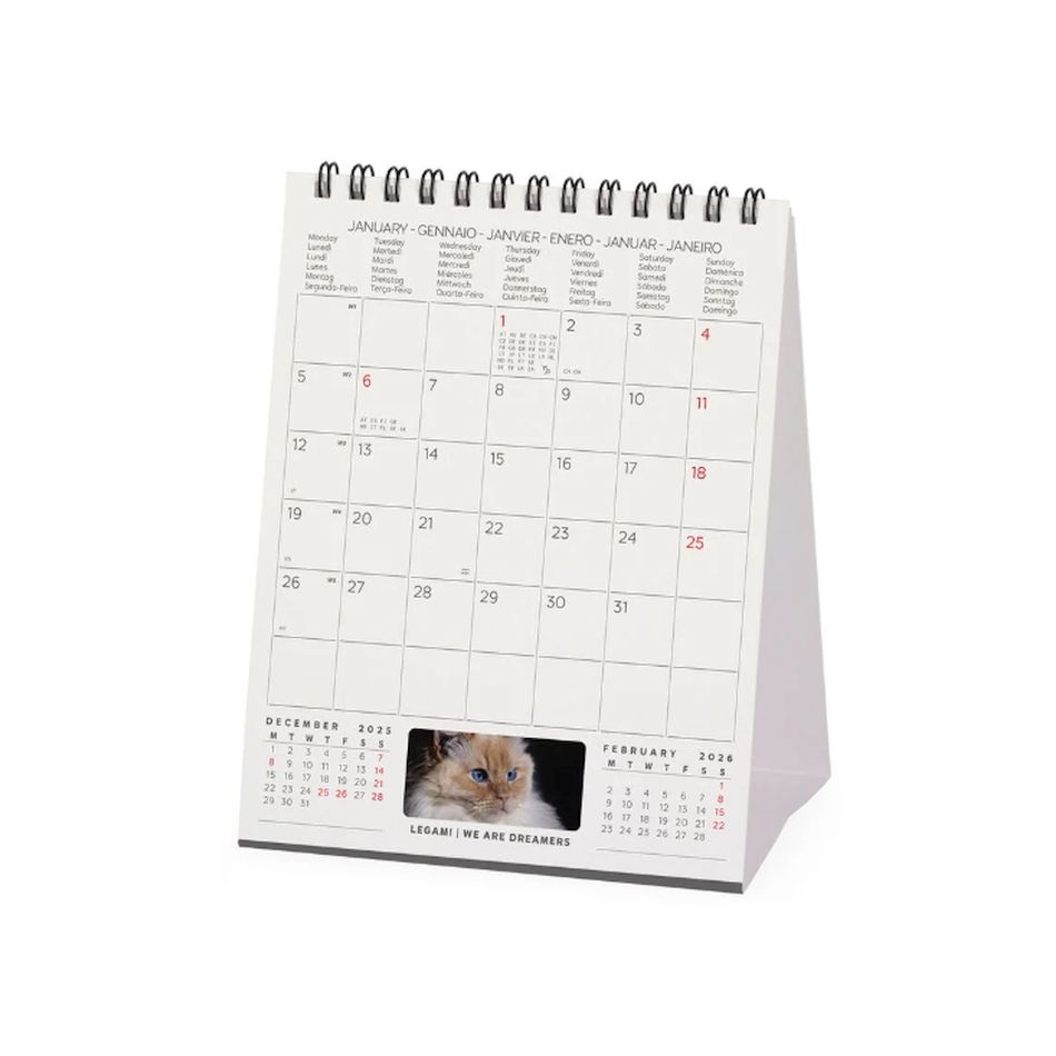 Αν λατρεύεις τις γάτες, ξέρουμε ακριβώς πώς να σου «ξύνουμε τη φαγούρα» για το 2026 με το επιτραπέζιο Ημερολόγιο Μικρού Μεγέθους - Cats από τη Legami! Δώδεκα μήνες γεμάτοι ακαταμάχητα βλέμματα, τέλειες πατουσίτσες και γλυκά, αγκαλιάρικα γατάκια που θα σου κρατούν συντροφιά κάθε μέρα, στο γραφείο ή στο σπίτι.