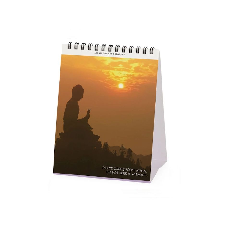 Κάθε μέρα αξίζει μια στιγμή γαλήνης και θα τη βρεις με το Επιτραπέζιο Ημερολόγιο Peace of Mind της Legami. Μήνα με τον μήνα, άφησε τις ζεν εικόνες και τα γαλήνια τοπία να σε εμπνεύσουν και να σε βοηθήσουν να επανασυνδεθείς με την εσωτερική σου αρμονία. Ένα μικρό ημερολόγιο για το γραφείο ή το σπίτι, που σου προσφέρει καθημερινά μια ανάσα ηρεμίας μέσα στους ρυθμούς της καθημερινότητας.