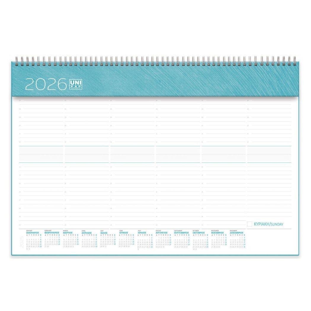 Εβδομαδιαίο Σπιράλ Πλάνο Γραφείου 2026 - Light Blue (28×40) - Unipap