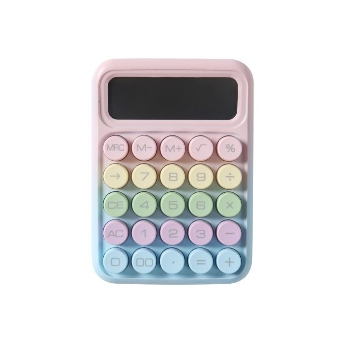 Προσθέστε μια δόση χρώματος και νοσταλγίας στο γραφείο ή την τάξη σας με αυτήν την μοναδική χρωματιστή αριθμομηχανή! Με μεγάλα, στρογγυλά πλήκτρα σε στυλ γραφομηχανής και καραμελένια χρώματα, οι υπολογισμοί γίνονται διασκεδαστικοί και άνετοι. Η εργονομική διάταξη των πλήκτρων μειώνει την κόπωση κατά τη χρήση, ενώ ο vintage σχεδιασμός προσφέρει μια νότα ρετρό γοητείας στον χώρο σας. Ιδανική για σχολείο, σπίτι ή γραφείο, η αριθμομηχανή λειτουργεί με μία μπαταρία τύπου AAA, προσφέροντας πρακτικότητα και στυλ σε κάθε υπολογισμό. Κάντε τους υπολογισμούς μια απολαυστική εμπειρία με στυλ και χρώμα!