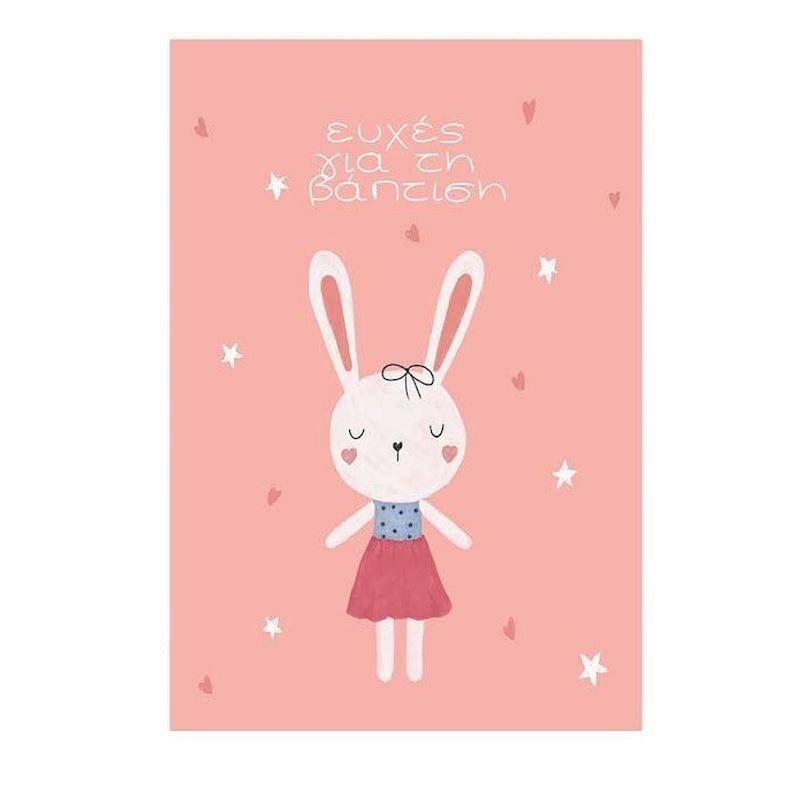 Χειροποίητη ευχετήρια κάρτα με Φάκελο - Ευχές για τη βάπτιση (Κουνελάκι/11x15.5) - J.o. Creations