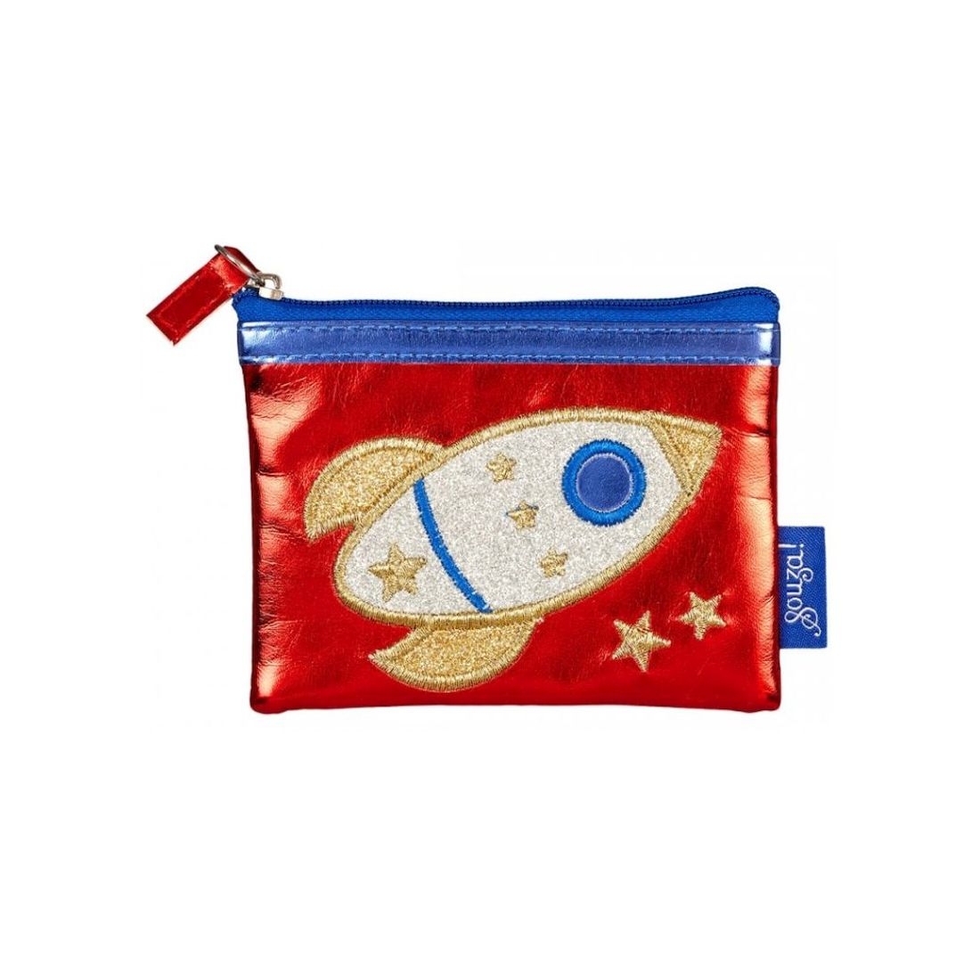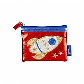 Παιδικό πορτοφολάκι διακοσμημένο με πύραυλο και διαστημικό θέμα, με ζωντανά χρώματα που θα ενθουσιάσουν τα παιδιά. Ιδανικό για μικρά αντικείμενα και χρήματα, συνδυάζει πρακτικότητα και παιχνιδιάρικο στυλ.