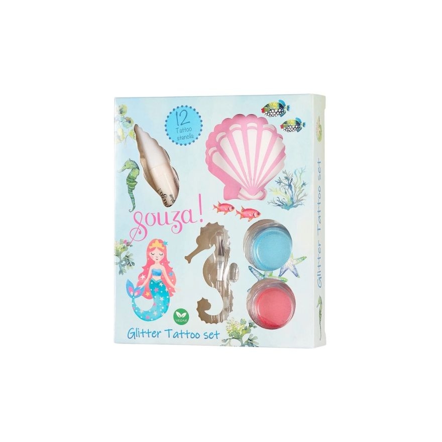 Σετ Μακιγιάζ Glitter Τατουάζ με Στένσιλ - Mermaid - Souza