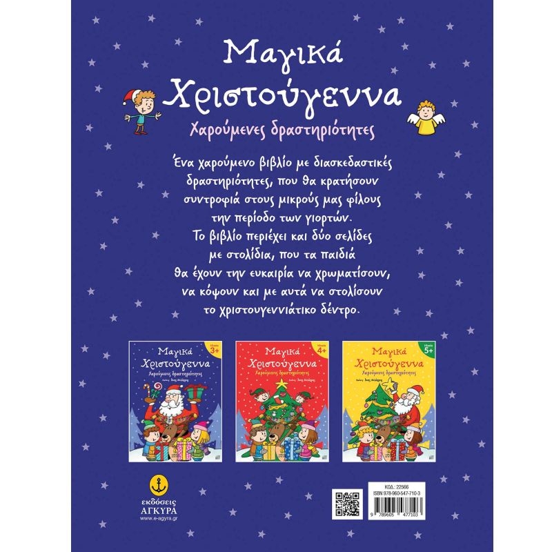 Ένα χαρούμενο βιβλίο με διασκεδαστικές δραστηριότητες, που θα κρατήσουν συντροφιά στους μικρούς μας φίλους την περίοδο των γιορτών. Το βιβλίο περιέχει και δύο σελίδες με στολίδια, που τα παιδιά θα έχουν την ευκαιρία να χρωματίσουν, να κόψουν και με αυτά να στολίσουν το χριστουγεννιάτικο δέντρο.