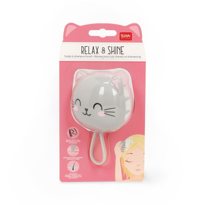 Ενεργοποίησε το “miaο-σάζ” σου! Με τη Βούρτσα Μασάζ Κεφαλιού - Relax & Shine της Legami, λίγες κυκλικές κινήσεις αρκούν για να μετατρέψεις το λούσιμο σε εμπειρία SPA. Οι μαλακές σιλικονούχες τρίχες της κάνουν απαλό μασάζ στο τριχωτό της κεφαλής, προσφέροντας απολέπιση, χαλάρωση και καλύτερη απορρόφηση των προϊόντων περιποίησης.