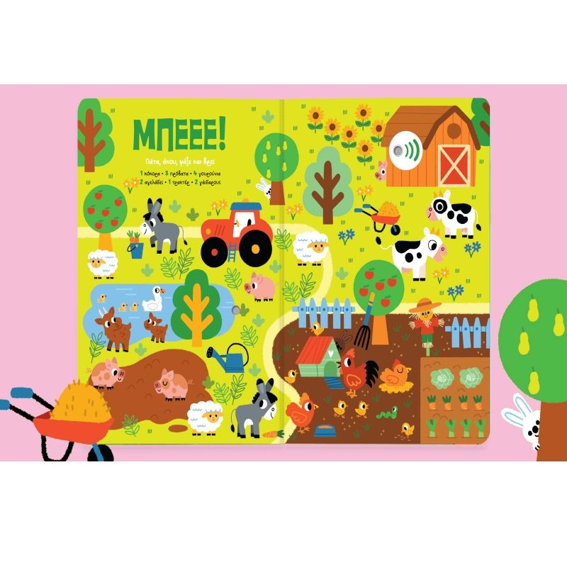 Άκου,αναγνώρισε, ψάξε & βρες….Ένα βιβλίο απαραίτητο για την αφύπνιση των αισθήσεων και της περιέργειας των μικρών παιδιών! 8 δισέλιδα γεμάτα εικόνες και 8 κουμπιά που το καθένα παίζει διάφορους ήχους ώστε κάθε φορά να αναγνωρίζουμε την αντίστοιχη εικόνα. Το μικρό παιδί θα ανακαλύψει 50 ήχους και περισσότερες από 100 εικόνες με πρόσωπα, ζώα και πράγματα. Εδώ και χρόνια οι Εκδόσεις Πατάκη πρωτοπορούν στην κατηγορία των ηχητικών βιβλίων με μια μεγάλη συλλογή διαλεγμένη με φροντίδα για τα πρώτα βήματα των παιδιών σας στο διάβασμα και στη μουσική. Βιβλία που βοηθούν τα παιδιά να ξεδιπλώσουν τα συναισθήματα αλλά και τα ταλέντα τους.