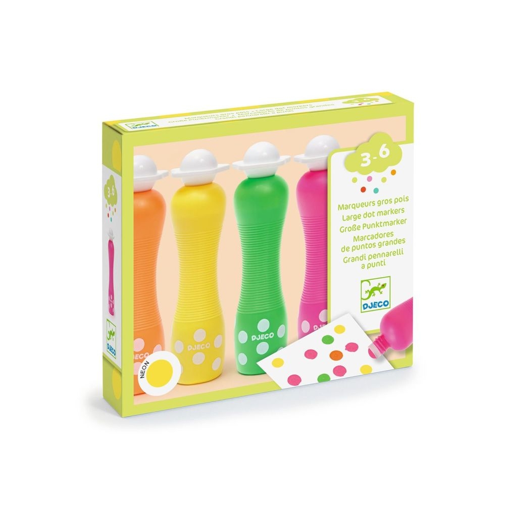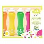 Σετ μαρκαδόρων από την εταιρεία Djeco για τα πρώτα καλλιτεχνικά βήματα των παιδιών. Αυτοί οι χοντροί μαρκαδόροι με την αφρώδη μύτη δημιουργούν εντυπωσιακές κουκκίδες με εφέ πέρλας, προσφέροντας έναν διασκεδαστικό και πρωτότυπο τρόπο για να ζωγραφίσουν και να εκφραστούν καλλιτεχνικά. Ο εργονομικός σχεδιασμός τους επιτρέπει στα μικρά χεράκια να τους κρατούν εύκολα, ενισχύοντας τη λεπτή κινητικότητα και τον έλεγχο των κινήσεων. Το μελάνι είναι υπερπλενόμενο, αποφεύγοντας λεκέδες σε ρούχα και χέρια — ιδανικό για άφοβο και δημιουργικό παιχνίδι.