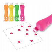 Περιλαμβάνει: 4 μαρκαδόρους με αφρώδη μύτη σε αποχρώσεις: πορτοκαλί, ροζ, πράσινο και κίτρινο και ένα πολύχρωμο και ασφαλές εργαλείο ζωγραφικής που μετατρέπει κάθε χαρτί σε καμβά γεμάτο πέρλες και φαντασία!