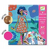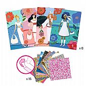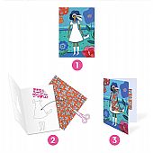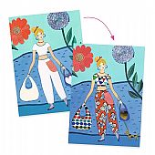 Δημιουργικό σετ από την εταιρεία Djeco, που προσκαλεί τα παιδιά να μεταμορφώσουν 8 κάρτες σε μοναδικές δημιουργίες μόδας. Χρησιμοποιώντας αυτοκόλλητα φύλλα με διαφορετικά σχέδια και υφές – όπως fluo, μεταλλιζέ κ.α. – τα παιδιά ντύνουν τέσσερα διαφορετικά μοντέλα και ανακαλύπτουν τη μαγεία: μόλις διπλώσουν την κάρτα, το μοντέλο εμφανίζεται έτοιμο, ντυμένο μέσα στη δική του σκηνή! Μια εύκολη και διασκεδαστική δραστηριότητα, ιδανική για μικρούς επίδοξους σχεδιαστές. Περιεχόμενα συσκευασίας: